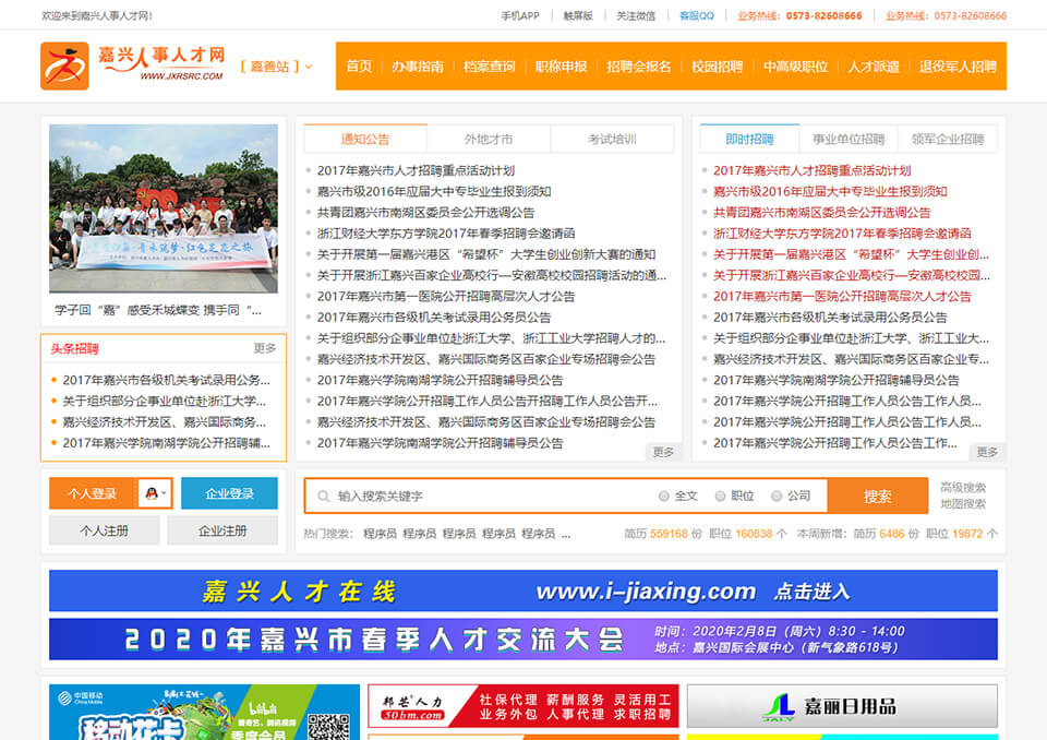 公司自主開發(fā)和運營的嘉興人才網(wǎng)( www.573job.com )和舟山人才網(wǎng)( www.93job.com )等平臺,經(jīng)過多年發(fā)展已經(jīng)成為當?shù)刈罹哂绊懥Α⒆罹邫?quán)威性、最具招聘效果的人才網(wǎng)站之一。